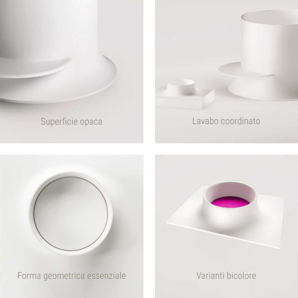“Alba” significa aurora, evocando sensazioni di un nuovo giorno che si sveglia, la soglia accogliente di un nuovo inizio o la pura perfezione del pensiero e della forma. Quando la base di una forma rettangolare si trasforma in un cerchio, nasce il minimalismo scultoreo