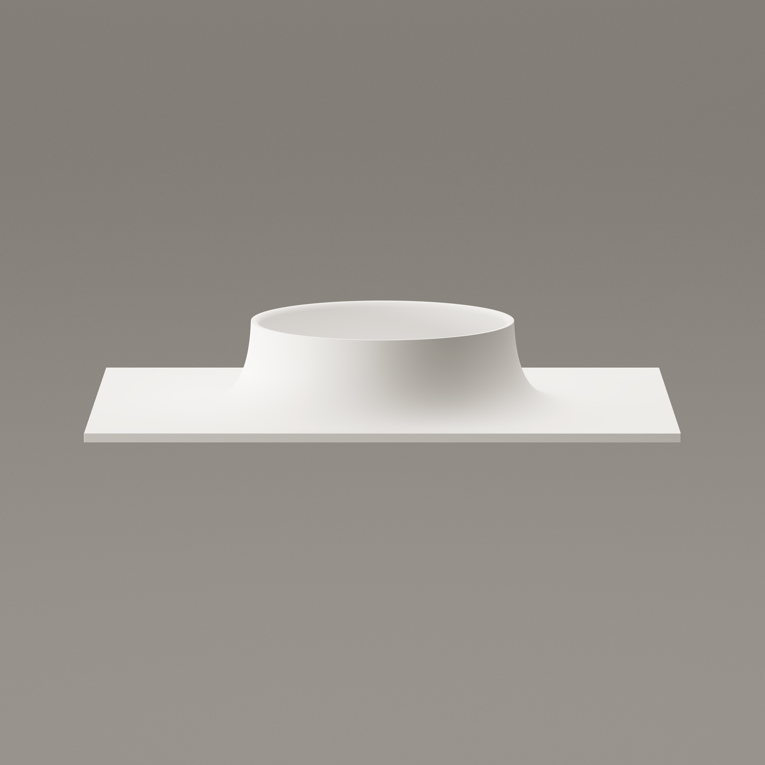 Skulpturāli tīras formas izlietne novietošanai uz skapīša. Pamatne ar pielāgojamu platumu un garumu. Ar inovatīvu noplūdi. Izgatavota no Silkstone – cēla un ilgmūžīga materiāla. Cieta kā akmens ar matēti zīdainu, siltu virsmu. Apstrādāta ar rokām.