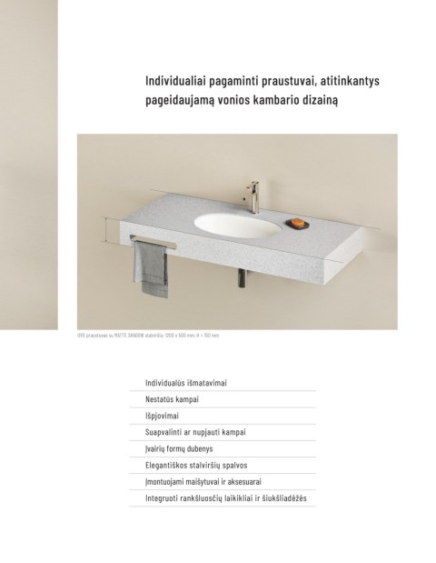 OVO praustuvas su MATTE SHADOW stalviršiu; 1200 x 500 mm; H = 150 mm